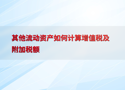 其他流动资产如何计算增值税及附加税额
