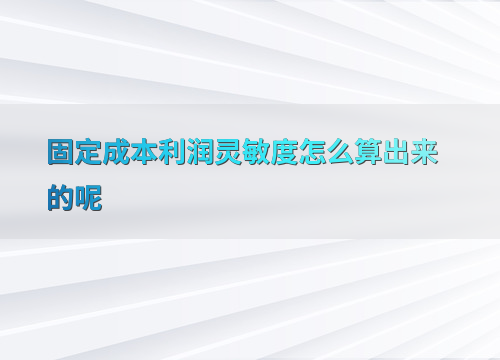 在财务管理中,理解固定成本和利润之间的关系至关重要。