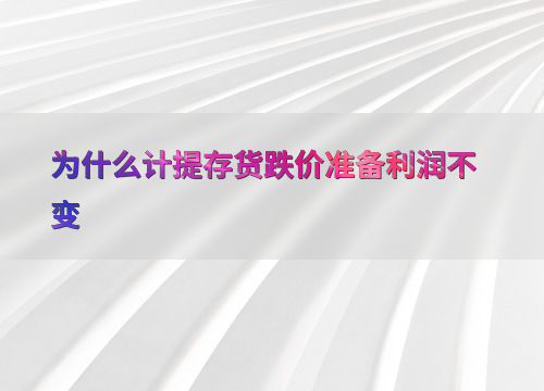 为什么计提存货跌价准备利润不变