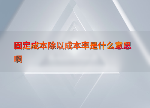 如何利用固定成本除以成本率来优化生产流程?答:通过分析单位固定成本,企业可以识别出哪些部分的成本过高,并采取措施进行优化。例如,可以通过改进生产工艺或采用新技术来降低固定成本,从而提高生产效率和盈利能力。
