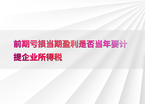 前期亏损当期盈利是否当年要计提企业所得税