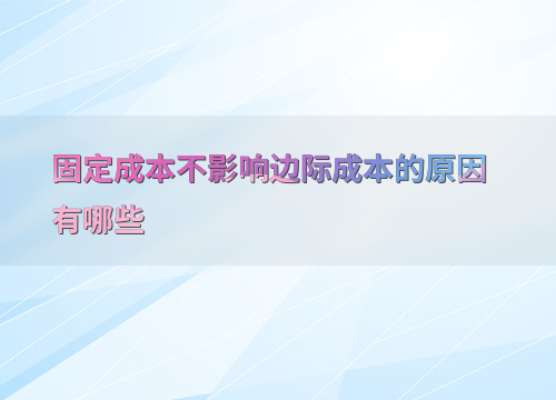固定成本不影响边际成本的原因有哪些