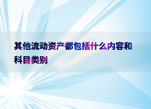 在财务会计中,其他流动资产是指那些不符合现金、应收账款或存货等主要流动资产类别的短期资产。