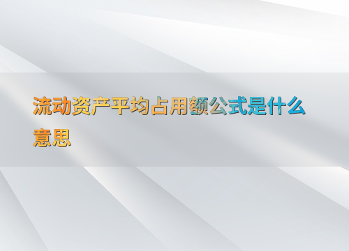 流动资产平均占用额公式是什么意思