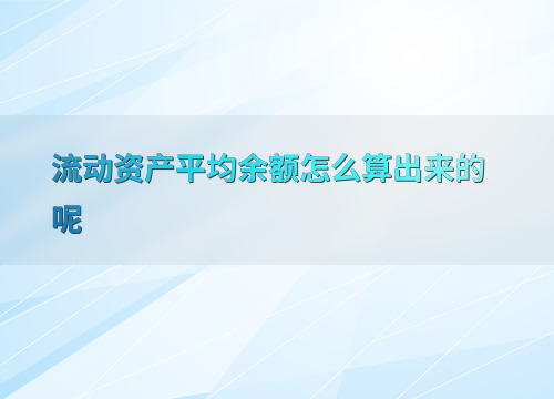 流动资产平均余额的应用与意义