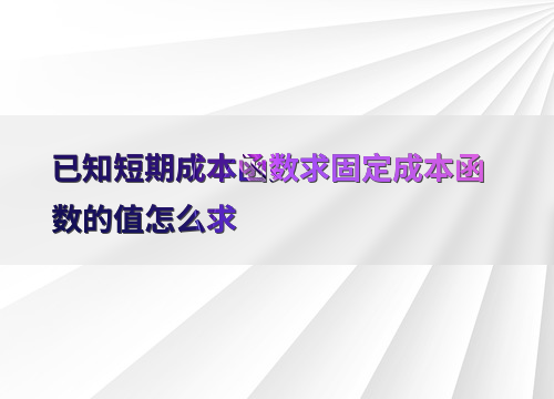 已知短期成本函数求固定成本函数的值怎么求