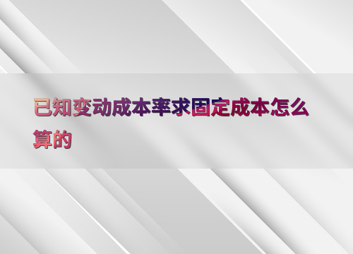 已知变动成本率求固定成本怎么算的
