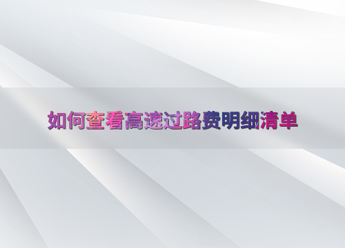 如何查看高速过路费明细清单