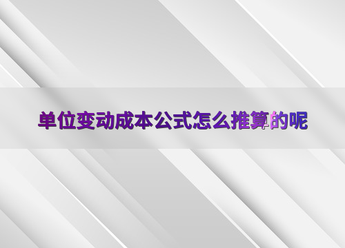 单位变动成本公式怎么推算的呢
