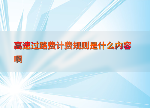 高速过路费计费规则是什么内容啊