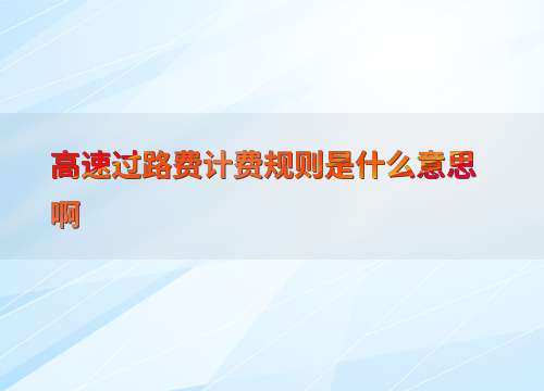 高速过路费计费规则是什么意思啊