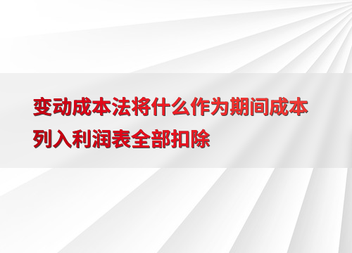 变动成本法将什么作为期间成本列入利润表全部扣除