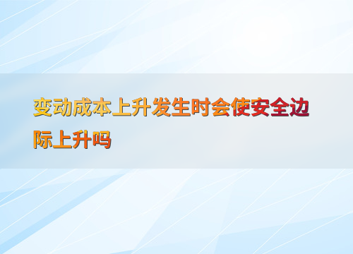 当变动成本上升时,企业的总成本曲线会上移,导致盈亏平衡点相应提高。这意味着为了达到相同的利润水平,企业需要销售更多的产品或服务。然而,这并不必然意味着安全边际会增加。实际上,如果销售量保持不变或增长不足以抵消变动成本的上升,安全边际可能会减少。