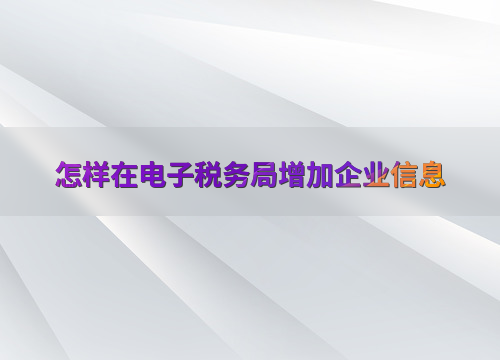 如何在电子税务局增加企业信息