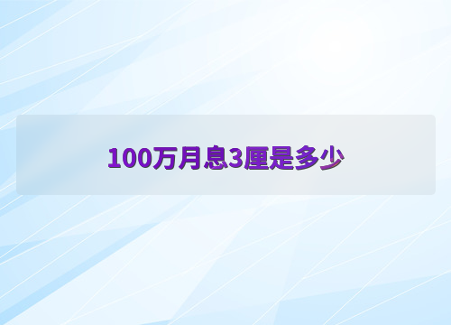 这意味着,如果一个人借了100万元,按月息3厘计算,每个月需要支付的利息是3,000元。这个数字对于评估借款成本或者投资回报率非常关键。