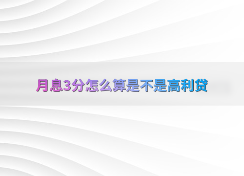 月息3分怎么算是不是高利贷