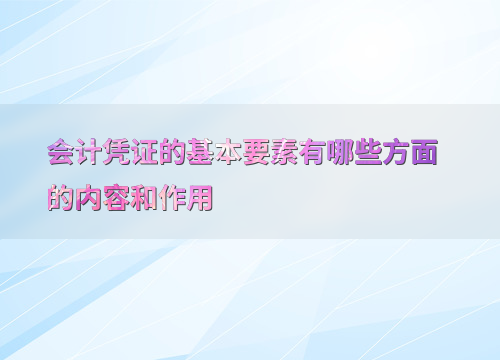 会计凭证的基本要素有哪些方面的内容和作用