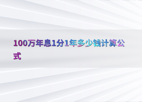 I = 1,000,000 × 0.01 × 1,得出结果为 10,000元。这意味着如果存入100万元,年利率为1%,那么一年后可以获得10,000元的利息收入。