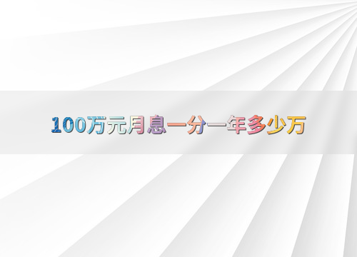 将具体数值代入公式:利息 = 1,000,000 × 0.01 × 12 = 120,000元。因此,100万元以月息一分计算,一年可以获得12万元的利息收入。这种计算方法适用于各种金融产品,包括银行存款、贷款和投资等。