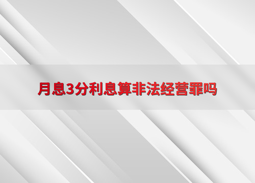 月息3分利息算非法经营罪吗