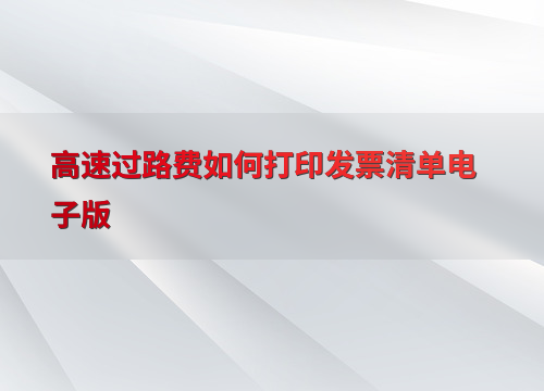 高速过路费如何打印发票清单电子版