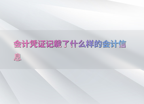 会计凭证记载了什么样的会计信息