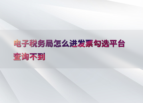 在使用电子税务局进行发票勾选时,有时会遇到无法查询到发票的情况。