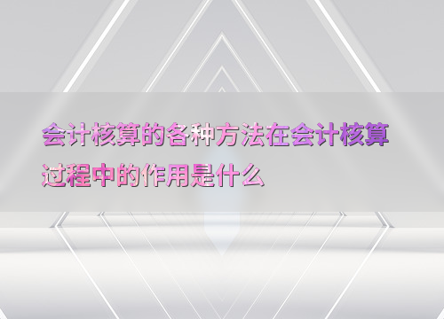 会计核算的各种方法在会计核算过程中的作用是什么