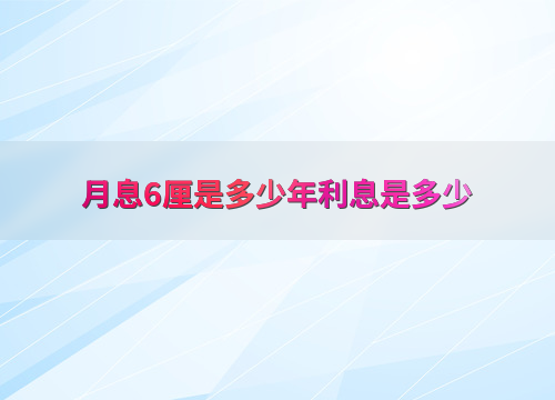 月息6厘是多少年利息是多少