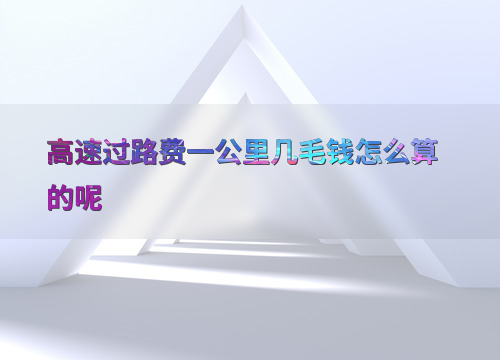 高速过路费一公里几毛钱怎么算的呢