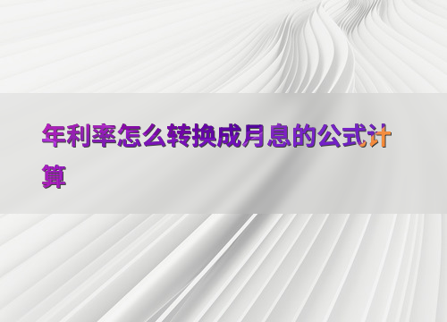 假设年利率为r(以百分比表示),则将其转换为月息的公式为:月息 = (r / 100) / 12。这里,r代表年利率,12表示一年中的月份总数。例如,如果年利率为6%,那么月息计算如下:(6 / 100) / 12 = 0.005 或者 0.5%。这意味着每月的利息率为0.5%。