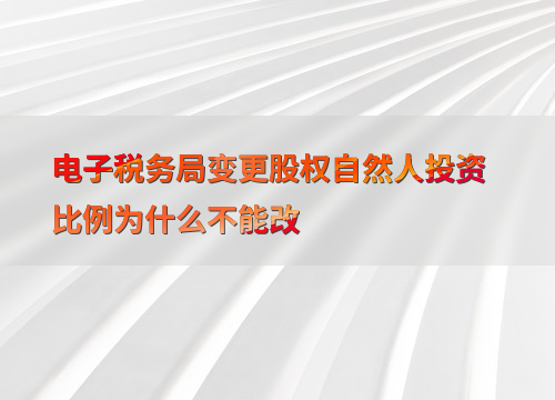 为什么电子税务局不支持直接变更自然人投资比例?答:由于股权变更涉及多方面的法律规定和财务计算,直接通过电子税务局进行此类操作可能会导致信息不准确或遗漏关键步骤,从而影响企业的合法权益。