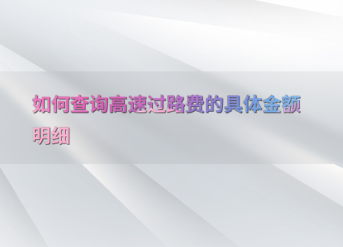 如何查询高速过路费的具体金额明细