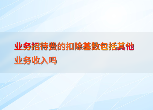 一般来说,其他业务收入是指企业在主营业务之外取得的收入,如租金收入、利息收入等。根据现行税法,这些收入可以纳入业务招待费的扣除基数。计算公式为: