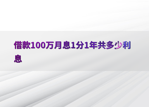 当我们讨论借款100万元,月息为1分(即每月利率为1%)时,我们需要明确几个关键概念。