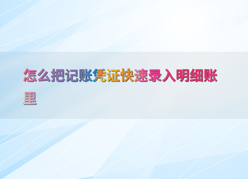 怎么把记账凭证快速录入明细账里
