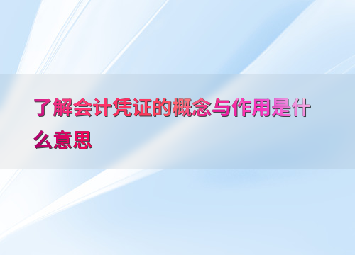 了解会计凭证的概念与作用是什么意思