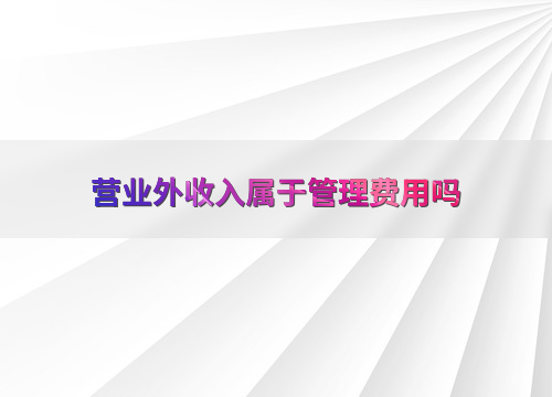 根据会计准则,企业的收入可以分为营业收入和营业外收入两大类。营业收入是企业通过销售商品或提供劳务等主要经营活动所获得的收入,而营业外收入则属于非主营业务活动产生的收入。因此,营业外收入并不属于管理费用。