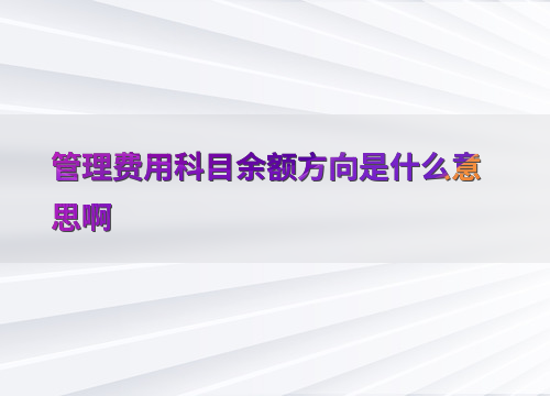 管理费用科目余额方向指的是该科目的借方或贷方余额情况。一般来说,管理费用属于费用类科目,其正常余额应在借方。这意味着当企业在日常运营中发生管理费用时,会记录在借方,从而增加费用总额。公式表示为: