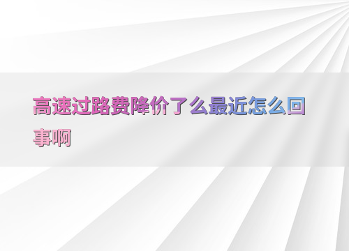 高速过路费降价了么最近怎么回事啊