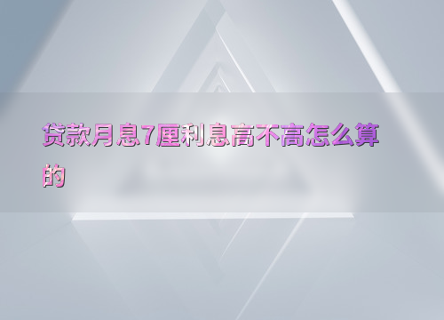 贷款月息7厘利息高不高怎么算的
