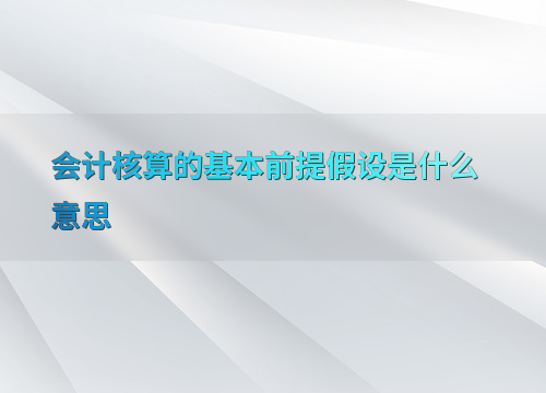 会计核算的基本前提假设是什么意思