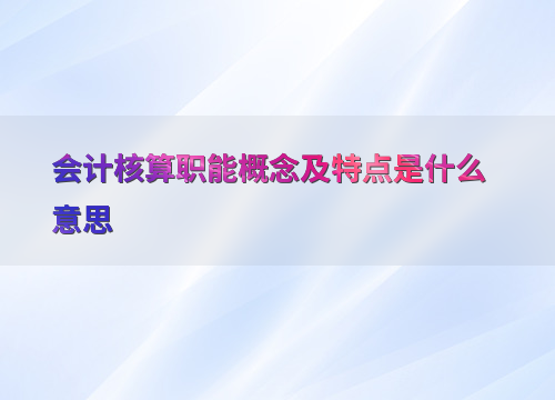 会计核算职能概念及特点是什么意思