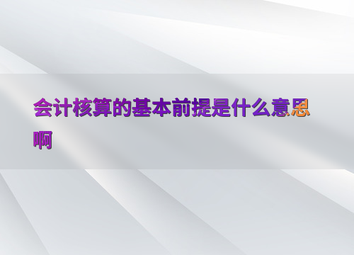 会计核算的基本前提是什么意思啊
