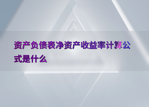 资产负债表净资产收益率计算公式是什么