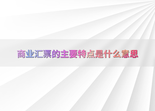 商业汇票的主要特点是什么意思