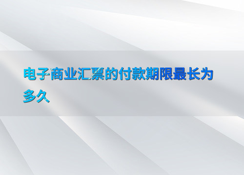 如何选择合适的电子商业汇票付款期限?答:选择合适的付款期限需要综合考虑企业的财务状况、市场环境以及交易双方的需求。通常情况下,企业可以通过分析现金流预测和市场利率变化来做出决策。