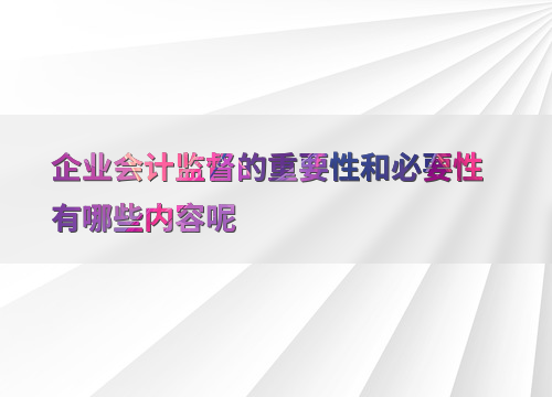 企业会计监督在现代企业管理中扮演着不可或缺的角色。