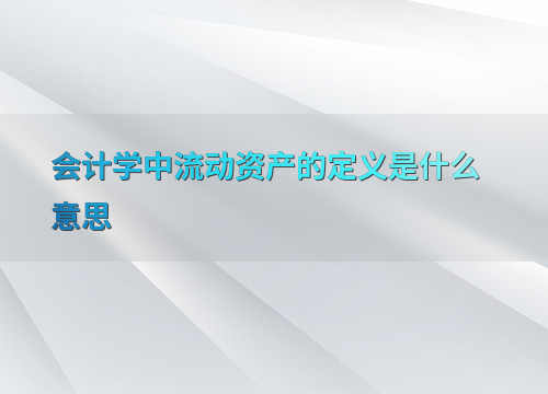 在会计学中,流动资产是指企业在一个营业周期内(通常为一年)能够转换为现金或被消耗的资产。
