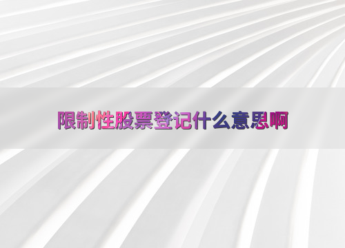 限制性股票登记是指公司为了激励员工或管理层,通过特定条件授予他们一定数量的公司股票。